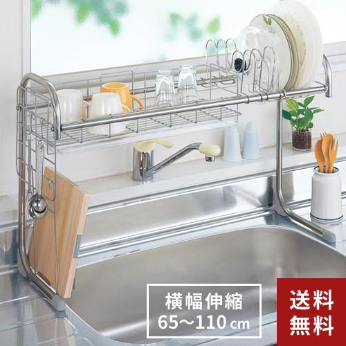 シンクサイド幅の広がる水切り 幅57cm 洗う食器の量に合わせて伸縮 水切りラック 日本製 水切りかご ヨシカワ 生活雑貨 本店 家具 インテリアの通販