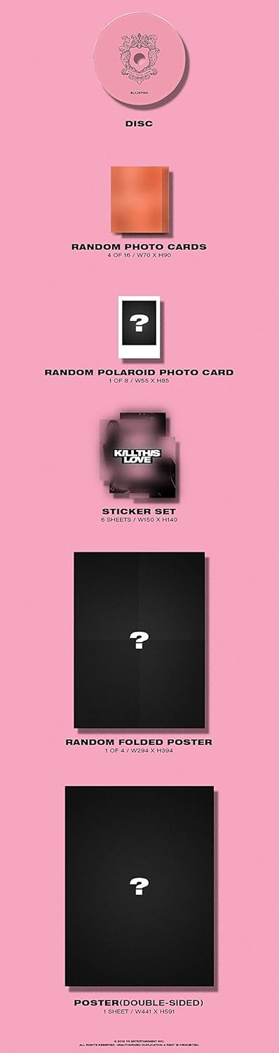 Amazon Com Yg Blackpink Kill This Love Random Ver 2nd Mini Album Cd 52p Photobook Lyrics Book 4photocards Polaroid Photocard Sticker Set On Pack Poster Folded Poster Double Side Extra Photocards Set Camera Photo
