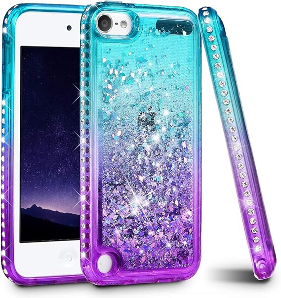 Amazon Com Ipod Touch 7th 6th 5th Generation Case Ruky Ipod Touch 5 6 7 Full Body Glitter Case With Built In Screen Protector Shockproof Protective Girls Bling Liquid Floating Case Teal Purple