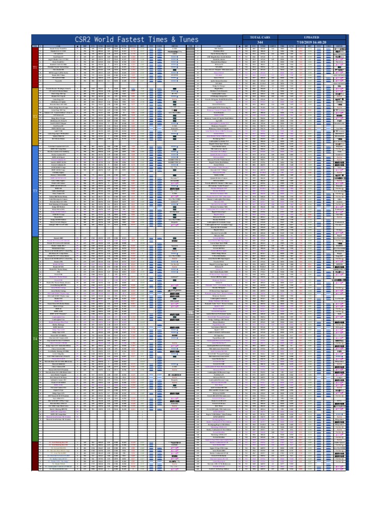 All Csr2 Cars With Best Time Tune Shift Pattern Chart October 2020