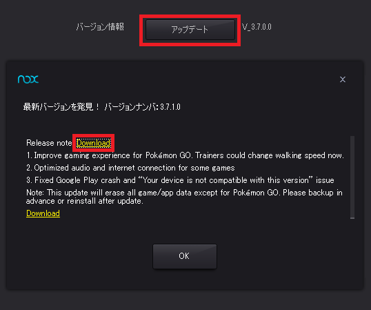 Nox App Player アップデート